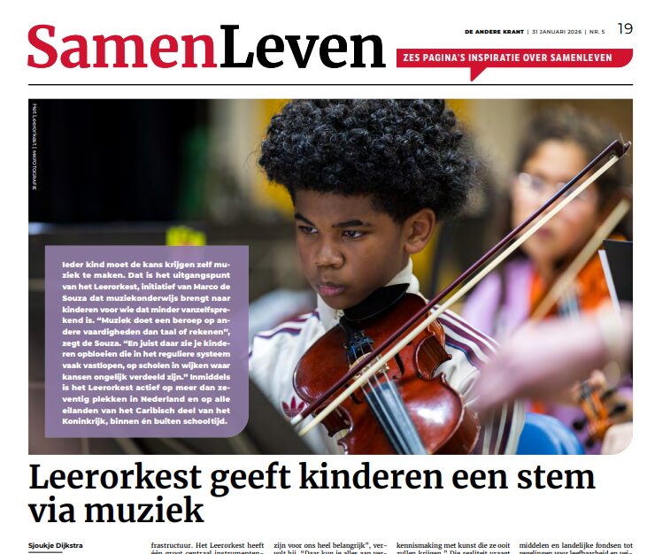 In de media, Interview, NieuwsDe Andere Krant: Leerorkest geeft kinderen een stem via muziek3 maart 2026Lees meer